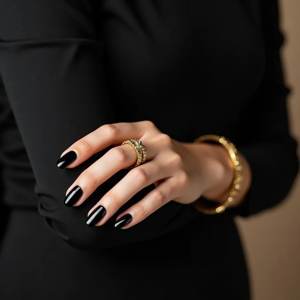 3. Black Almond Nails — Glossy