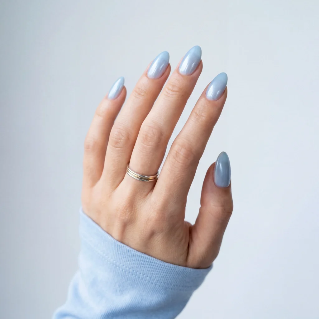 13. Blue Almond Nail Ideas — Sky Glazed