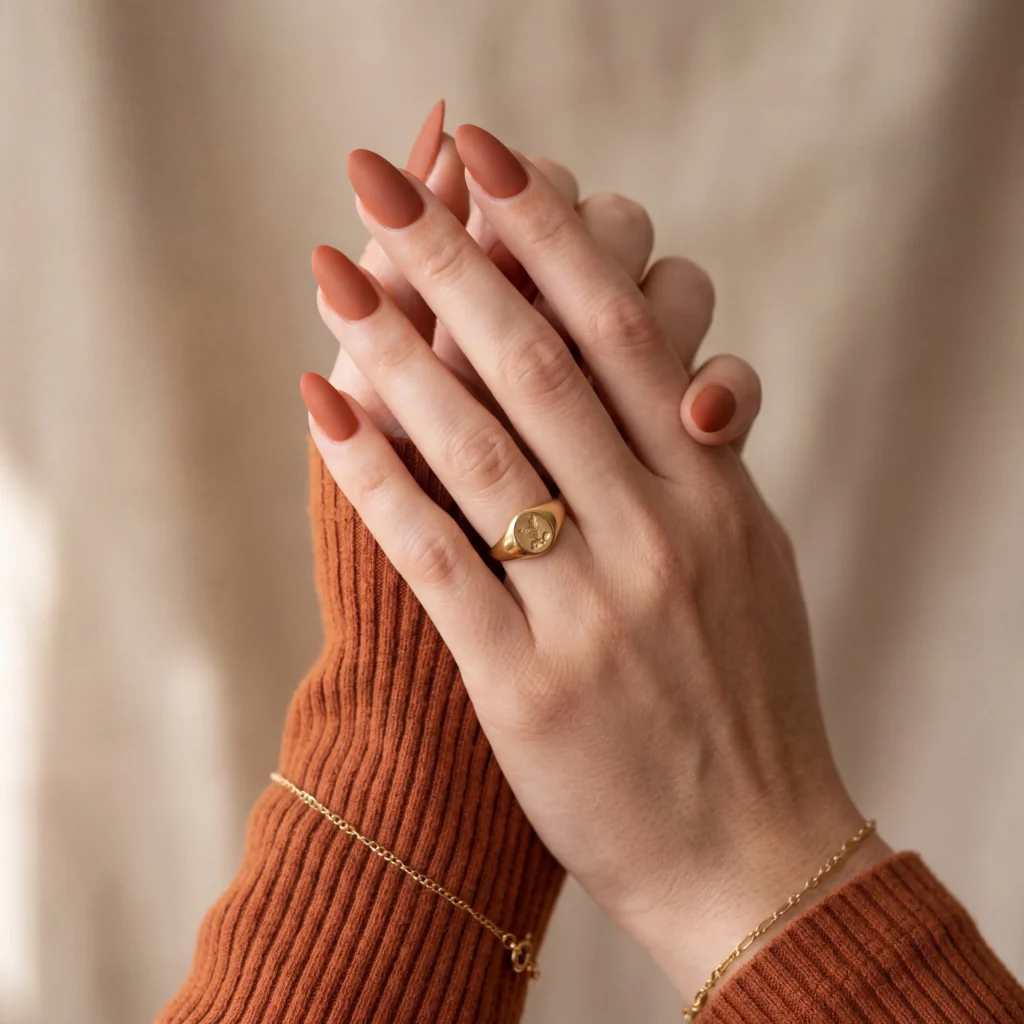 14. Fall Almond Nail Ideas — Terracotta Matte