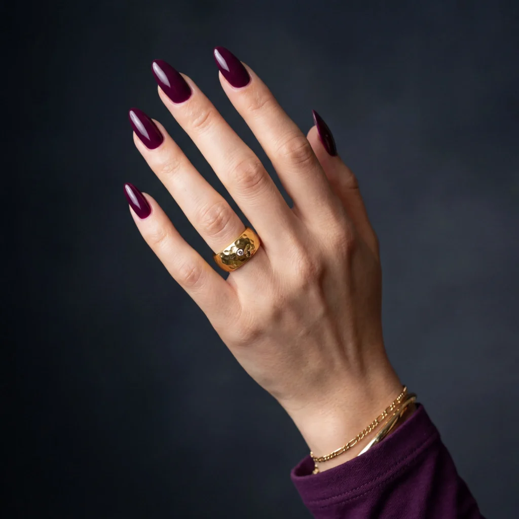 16. Long Almond Nails — Deep Plum