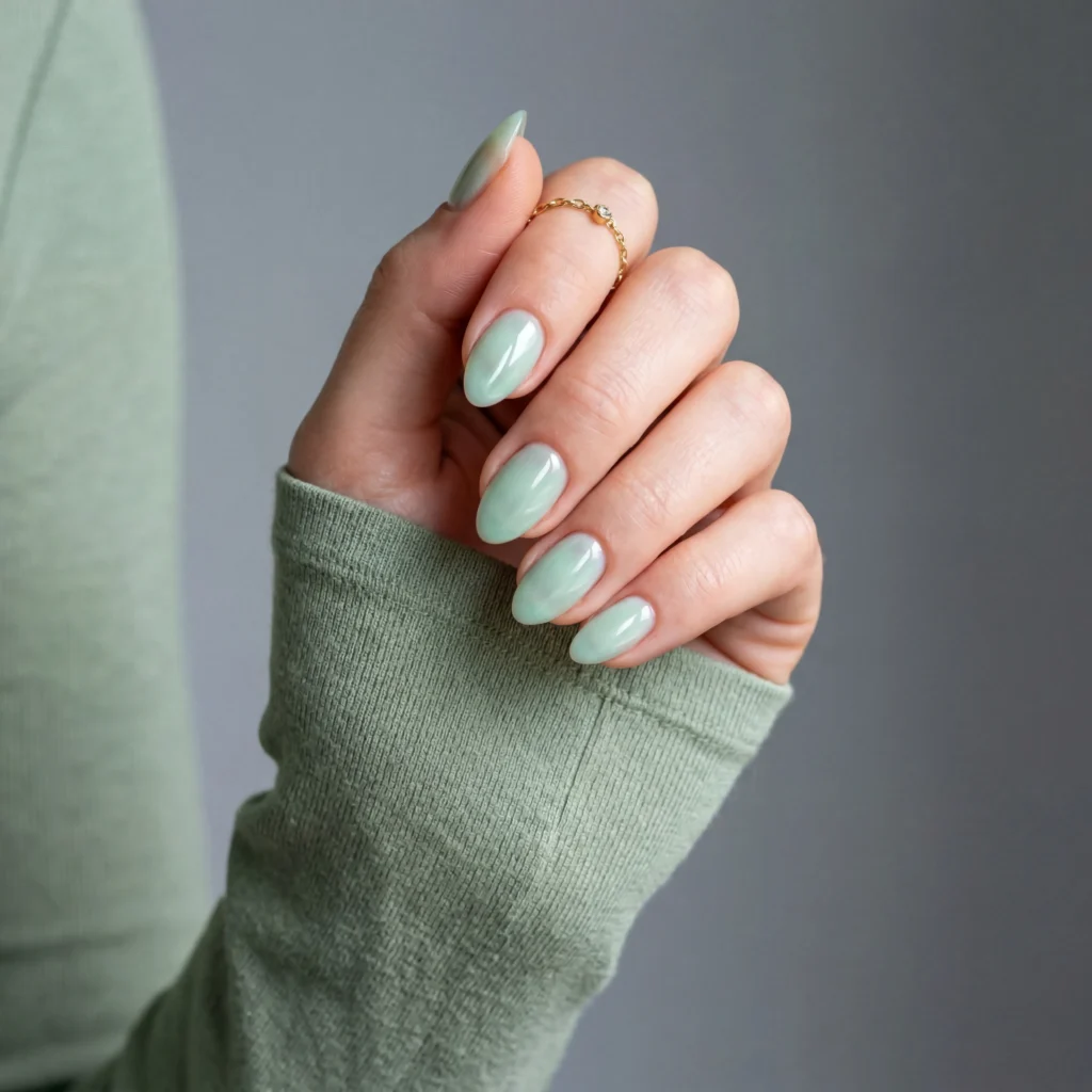 17. Mint Glazed Short Almond Nails
