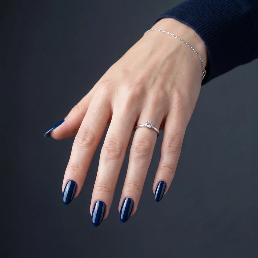 19. Winter Almond Nails — Deep Navy