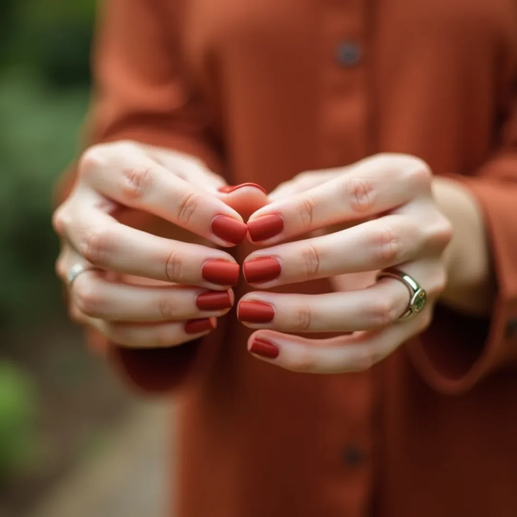 Terracotta reads like an autumn colour until it arrives in spring and immediately feels inevitable. The warm, clay-adjacent, earthy orange-brown has moved into the spring nail conversation in 2026 with more force than expected — the warmth of the shade connecting to the season in the same way coral does but with more depth and more character. On short square nails with a matte finish the earthy quality of the colour reads completely contemporary. On medium coffin nails with a satin finish it reads warmer and more editorial. Terracotta is the spring nail colour for those who want something that feels grounded rather than seasonal in an obvious way.