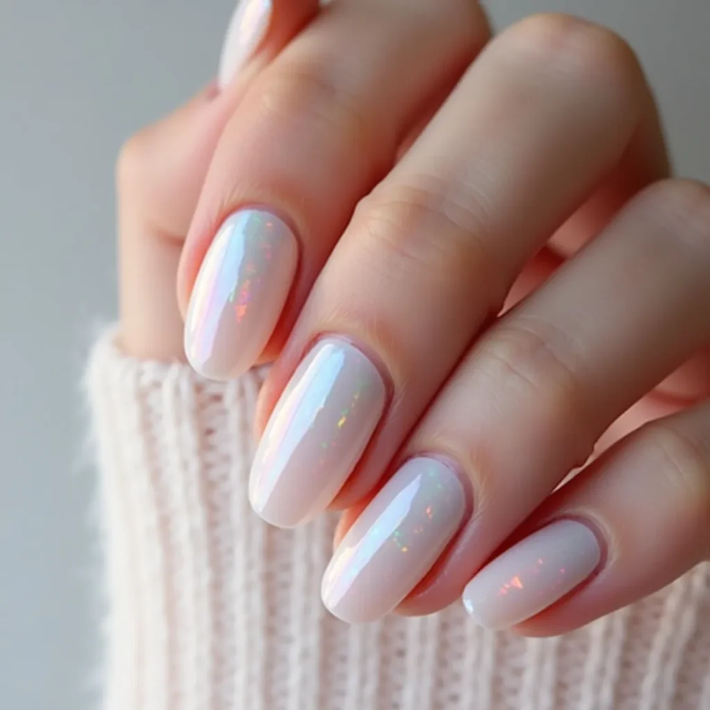 Iridescent pearl closes this collection as the spring nail colour that is least easily categorised and most immediately covetable. It is not a colour in the conventional sense but a finish and a quality — a white-based iridescence that shifts between pale pink, soft lilac, and cold white depending on the angle and the light source. On medium almond nails with the pearl applied over a sheer base the effect reads like the inside of a shell, each movement of the hand revealing something slightly different. This is the spring nail colour for those who want their manicure to be a conversation piece — one that rewards the viewer who looks twice and never looks the same way twice.
