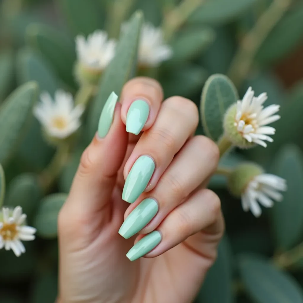 Mint green occupies a unique position in the spring nail colour conversation — it is recognisably a spring shade, it carries obvious seasonal associations, and yet in 2026 it feels completely fresh. The version that is resonating is not the flat, slightly chalky mint of previous iterations but a cooler, cleaner mint with a faint icy undertone that reads almost holographic in certain lights. On medium coffin nails with a chrome finish the icy quality is amplified into something genuinely spectacular. On short oval nails with a glossy topcoat it reads cleaner and more wearable. Mint is the spring nail colour for those who want something immediately recognisable as seasonal but entirely current in its execution.