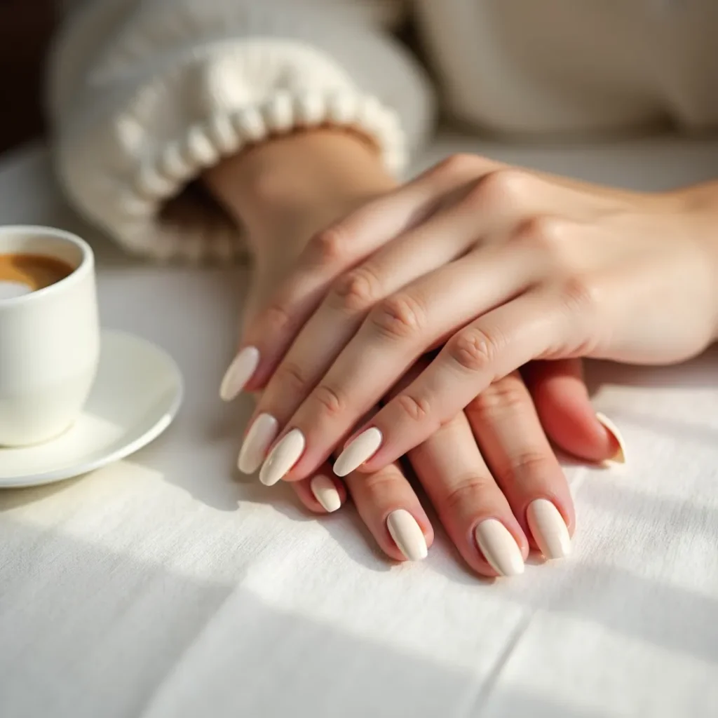Soft white — not the stark bright white of a gel French, but a warm, slightly creamy, fully opaque white with depth in it — is one of the most elegant spring nail colours of 2026. The warmth in the white keeps it from reading clinical or stark, giving the shade a softness that works across every nail shape and every length without adjustment. On long coffin nails with a glossy finish it reads genuinely bridal. On short round nails with a matte finish it reads completely contemporary. Soft white is the spring nail colour that looks completely different across finishes — and completely correct across all of them.