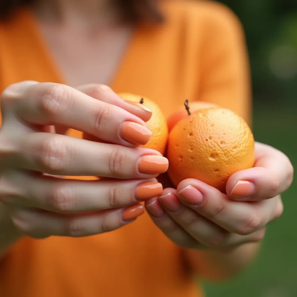 Peach is the spring nail colour with the most nuance in this collection — it reads warm, it reads feminine, it reads flattering against every skin tone, and in 2026 the version that is resonating has more depth than the flat peachy nudes of previous seasons. This is a peach with warmth in it — a coral-adjacent, golden-tinged shade that sits closer to a ripe fruit than a mixed pastel. On medium almond nails with a glossy finish it reads like the season distilled into a colour. On coffin nails with a jelly finish it picks up a translucence that amplifies the warmth even further. Peach is the spring nail colour that will always photograph better than expected.