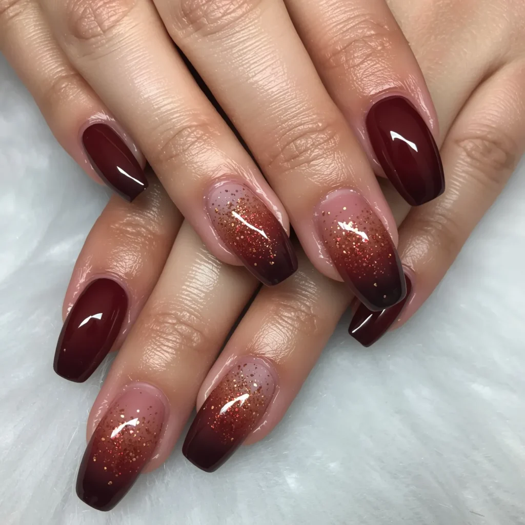 Burgundy Ombré with Metallic Dust: Warm Gradient with Luxury Detail