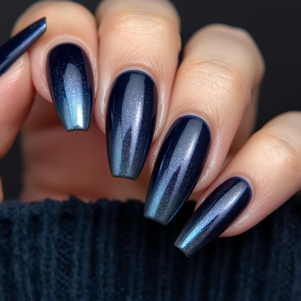 Deep Navy Ombré to Chrome: Twilight Gradient with Metallic Finish