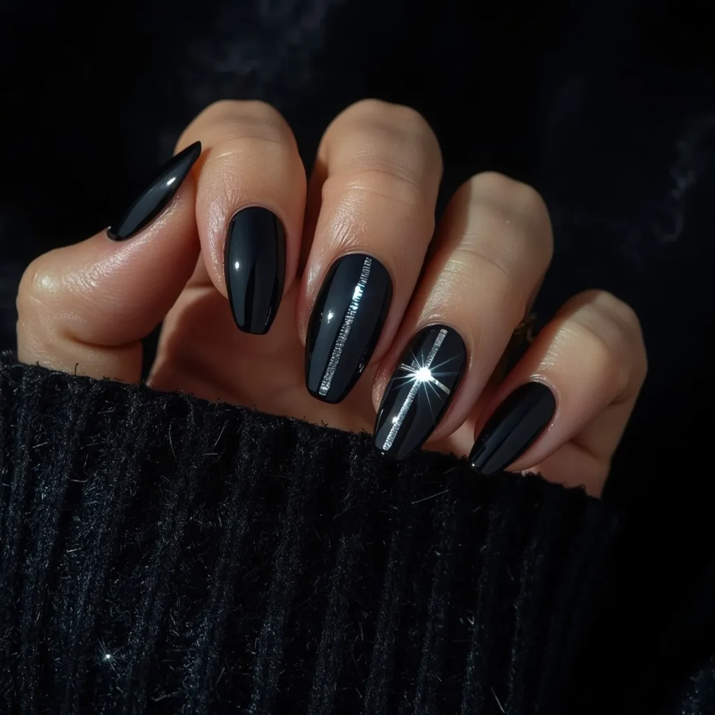 This is where mystery meets light-play. A deep, nearly navy-to-black sapphire base on almond or coffin nails creates a dark, sophisticated canvas, while a luminous cat-eye effect—created through strategic magnet placement and chrome-effect techniques—creates a bright, dimensional stripe of light that catches and reflects like a precious gemstone opening up before your eyes. The effect is magnetic, jewelry-like, and utterly hypnotic. The sapphire base reads as both spring (deep evening sky, twilight, precious gemstone) and winter (dark, moody, sophisticated), creating that perfect transitional richness. A super-glossy finish amplifies the cat-eye effect, making the light-catch feel almost three-dimensional. This manicure demands attention without being loud—it’s quiet power, chromatic confidence, and the understanding that deep colors can be more striking than brights. Pair with minimal styling and watch people become magnetized by your hands.