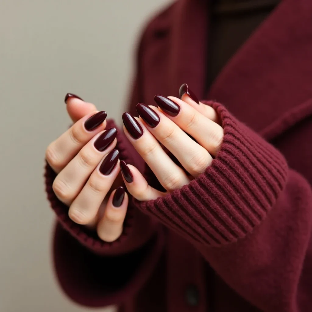 Burgundy gel nails remain a winter staple due to their depth and richness. The color feels grounded and seasonally appropriate without appearing festive. As a winter gel nail idea, burgundy works best as a solid color, allowing the tone to stand on its own. The gel finish enhances smoothness and color consistency, ensuring a polished look throughout wear. Burgundy gel nails pair naturally with winter wardrobes and darker accessories, making them a reliable cold-weather choice.