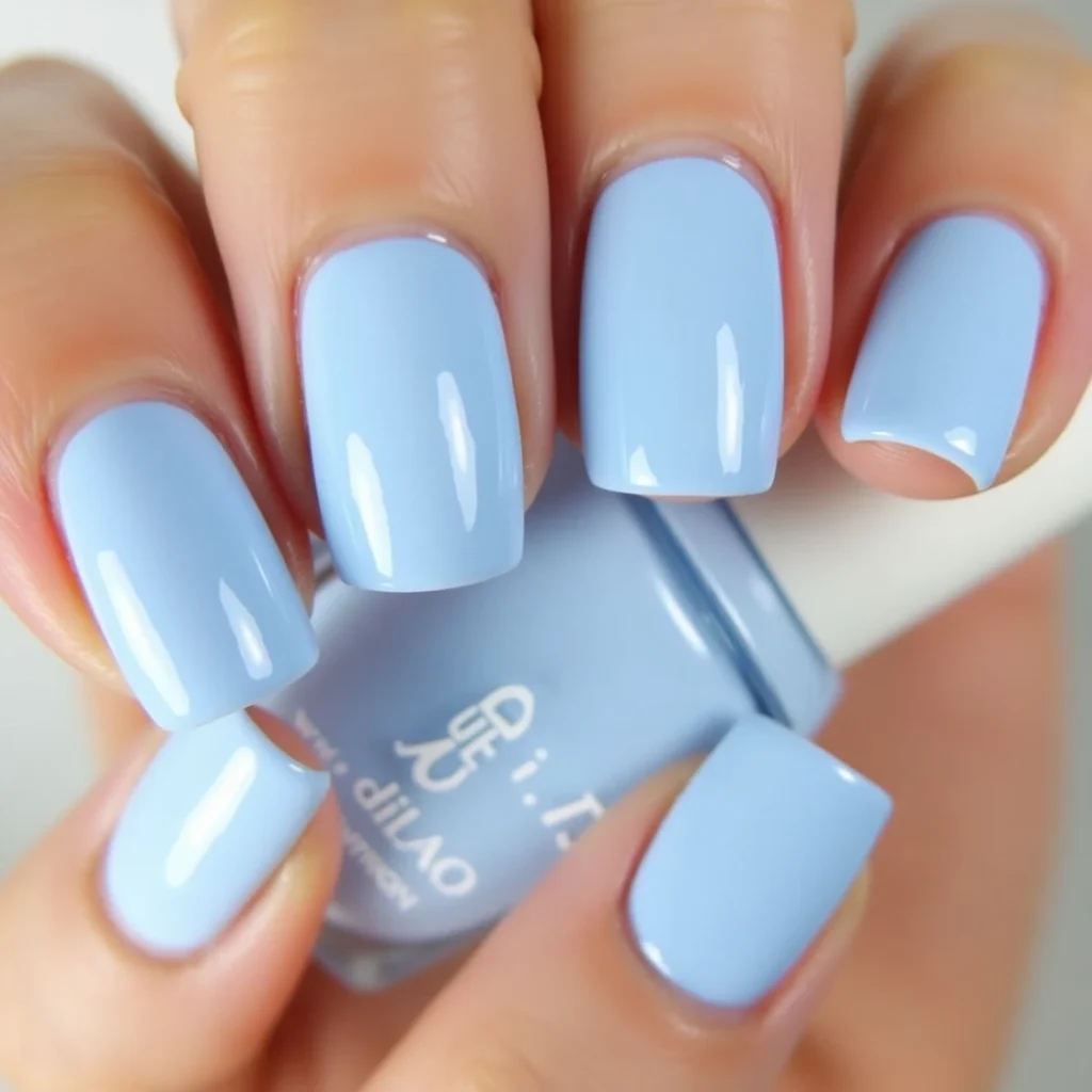 Pale blue gel nails bring a cool, calming tone that suits winter well. The color remains soft and muted, avoiding brightness that may feel out of season. As a winter gel nail idea, pale blue works best as a solid color, allowing the shade to appear intentional and balanced. The gel finish enhances clarity and smoothness, helping the color maintain its freshness in winter light. This shade pairs easily with gray, black, and neutral wardrobes, making it a practical yet refined option throughout the colder months.